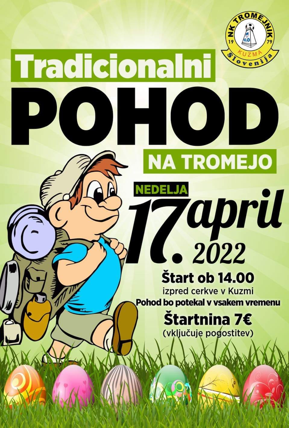 Tradicionalni pohod na Tromejnik. Štartnina: 7€, vključena je pogostitev. Pohod bo potekal v vsakem vremenu.